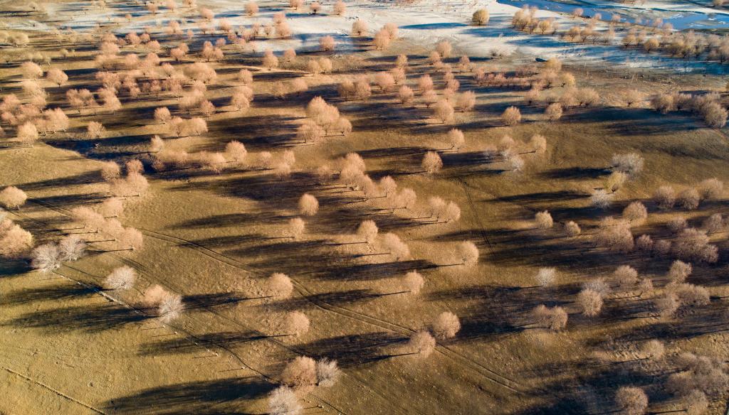 在内蒙古呼伦贝尔市陈巴尔虎旗境内拍摄的冬日莫尔格勒河景色。新华社发(王正摄)