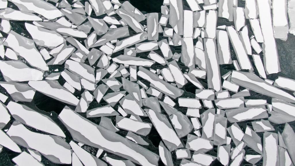 冰雪覆盖下的青海湖一角。冬日时节,雪后的青海湖,冰雪覆盖的湖面如同破碎的玉带,形成独特的景观。新华社记者 张宏祥 摄