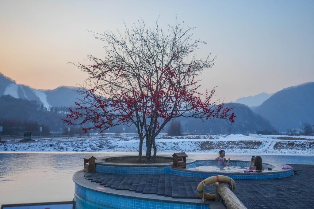 游客在本溪市本溪县花溪沐温泉酒店体验室外温泉。辽宁省温泉资源丰富,冬季温泉游吸引不少游客前来体验。新华社记者 潘昱龙 摄