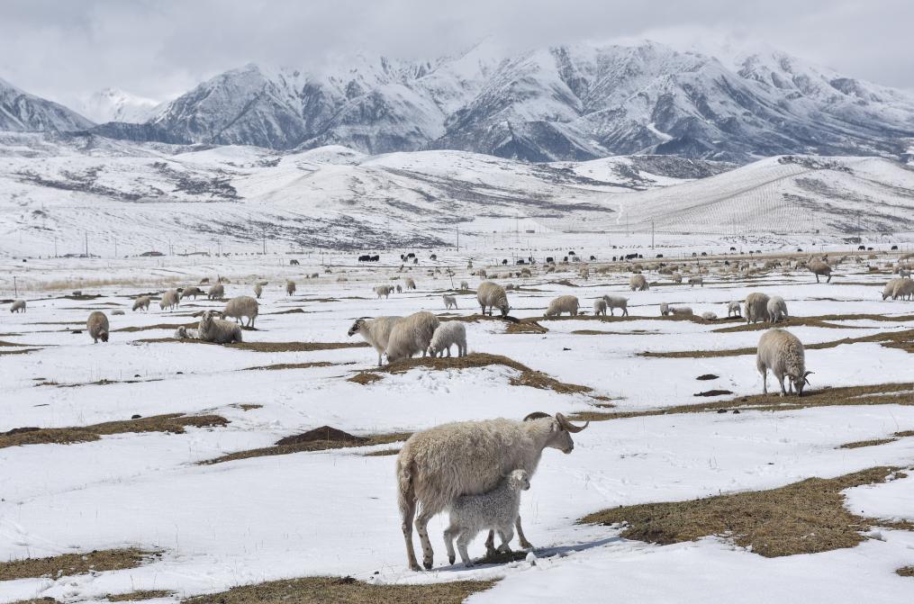 雪后的青海省海北藏族自治州祁连县阿柔草原,草原、森林、牦牛与羊群在白雪映衬下呈现出别样的美。新华社记者 吴刚 摄