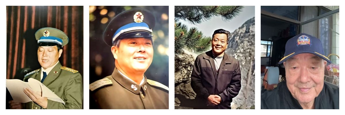 图为朱守用任师政治部主任、某航校政委、某飞行学院政委、空军某军政治部副主任以及退休后的照片。