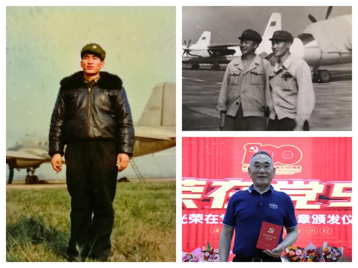 图1为二中队副中队长、空勤机械师陈广德,他曾多次执行西北重大科试任务,为我国国防尖端科学发展作出了突出贡献,现退休在青岛;图2、图3、图4为空勤机械裴文林,安全飞行2万多小时,荣获“光荣在党50年”纪念章,现退休在福州。