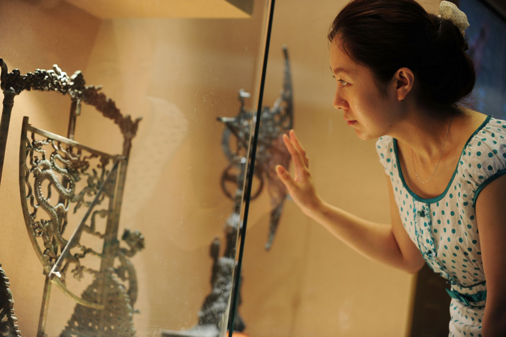 游客在中国测绘科技馆内观看中国古代测绘仪器的还原品。新华社记者 杨光 摄