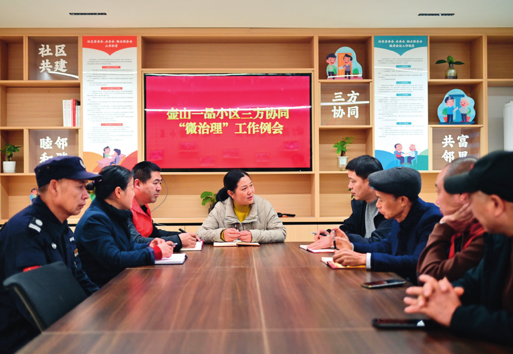 浙江省武义县壶山街道塔山社区壶山一品小区召开三方协同“微治理”工作例会(2023年12月摄)。武义县委组织部供图