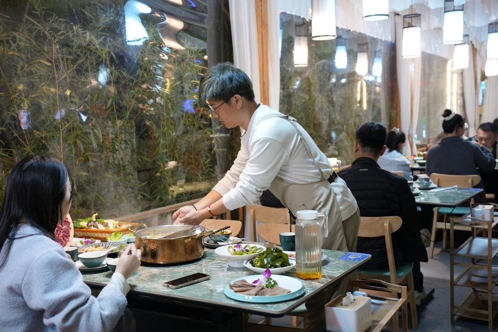 图为黄必栋在自己的餐厅忙碌。新华社发