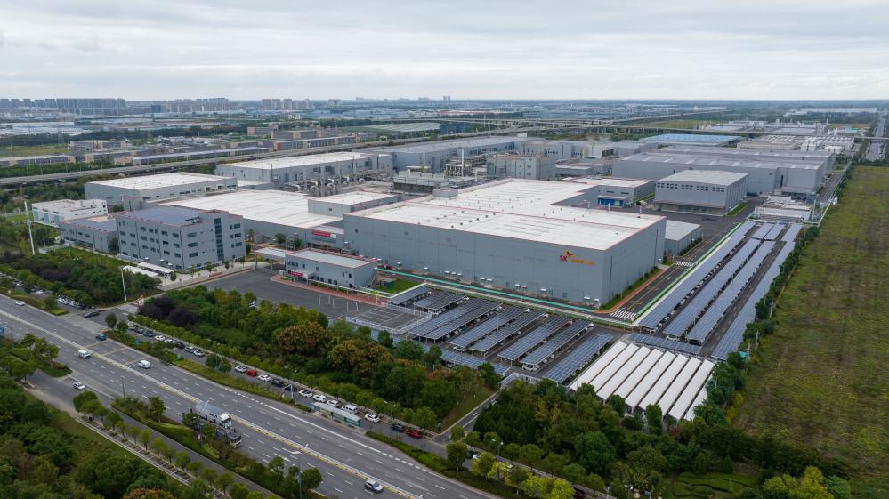 位于中韩(盐城)产业园内的SK新能源一期动力电池生产基地(10月16日摄,无人机照片)。新华社记者 李博 摄