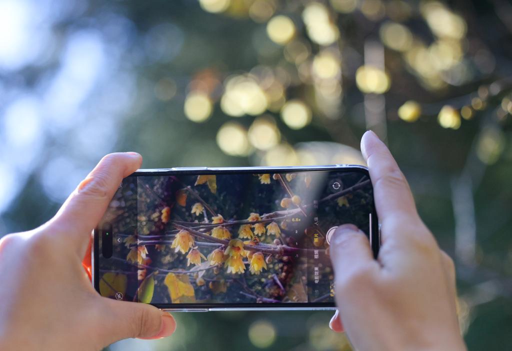 12月4日,游客在卧佛寺拍摄腊梅。近日,北京西山十方普觉寺(又名卧佛寺)的腊梅初开,吸引众多游客前来赏花拍摄。新华社记者 殷刚 摄