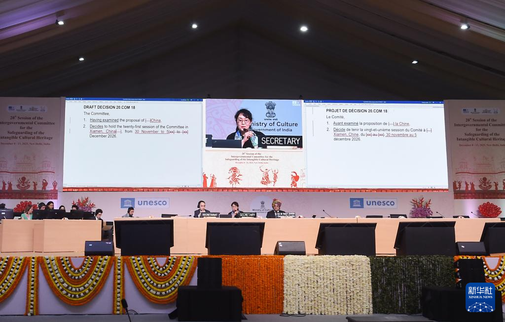 新华社新德里12月12日电(记者伍岳 陈冬书)联合国教科文组织保护非物质文化遗产政府间委员会第20届常会12日决定,将于2026年11月30日至12月5日在中国厦门举办委员会第21届常会。