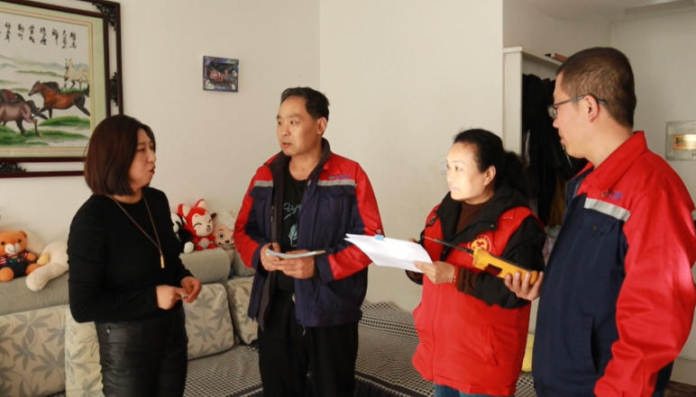 甘肃省兰州市范坪热网有限公司供热工作人员在兰州市七里河区居民家中走访。新华社记者 多蕾 摄