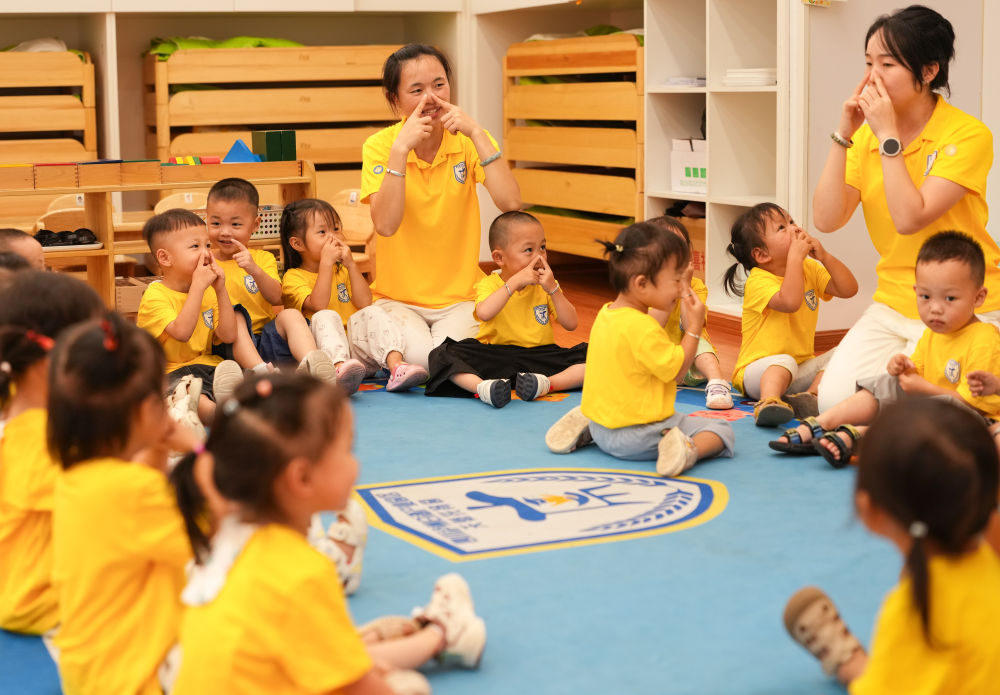 2025年9月5日,四川泸州白酒产业园区天骄托育园的老师带领孩子们做游戏。2023年以来,泸州市不断探索“园中园”托育模式,将普惠托育服务嵌入产业园区,通过“园、企、校、地”四方共建共营模式,着力破解园区职工上班带娃难题,“带孩子上班、陪娃娃回家”成为园区一道独特的风景线。