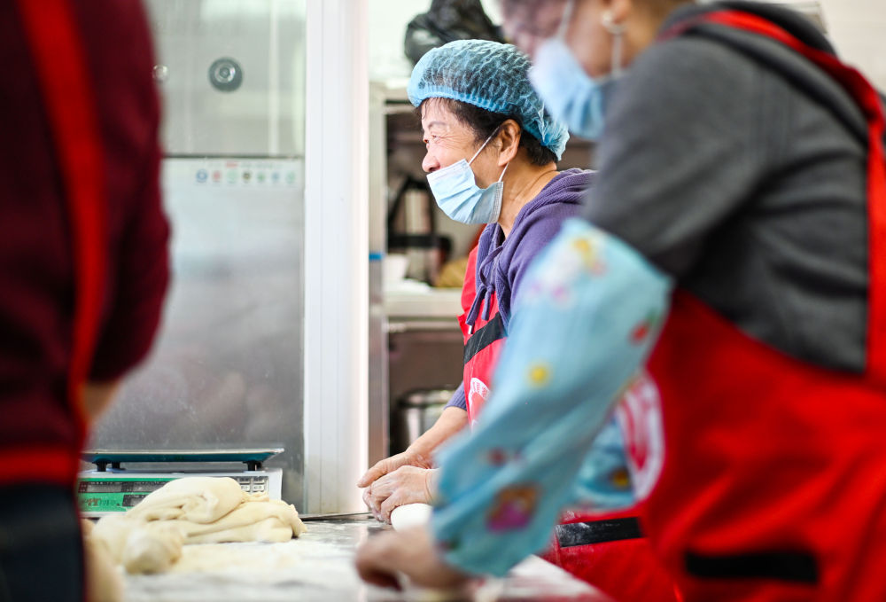 2025年10月27日,在天津市滨海新区古林街道欣欣里社区互助食堂,社区志愿者们揉面准备做馒头。欣欣里社区是典型的老龄化社区,空巢老人多,80岁以上老人超过150位。为缓解老人们“吃饭难”问题,2023年,街道办事处将一处办公用房改造成互助食堂,并委托社会组织“康乐老年之家”运营,为社区高龄老人、困难群体提供免费午餐。如今的互助食堂不仅是老人解决一餐一饭的场所,更成为串联起社区情感的纽带。