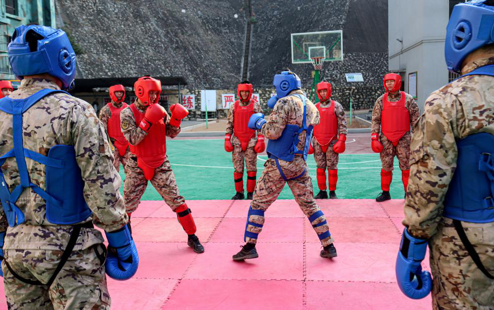 武警广西总队某支队开展群众性练兵活动,营造浓厚的“比、学、赶、帮、超”氛围,强化官兵体能储备与军事技能,淬炼血性胆气。(江怀鹏、陈国鑫)