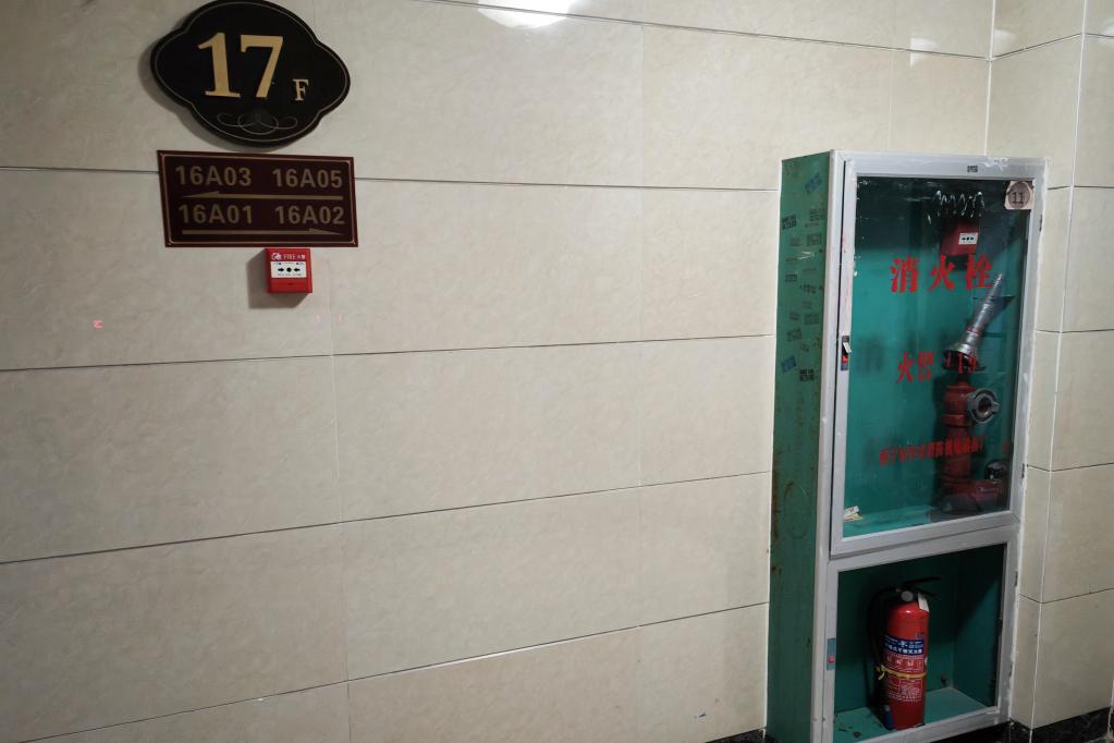 在广西某市一高层住宅小区内,消防水带缺失(12月3日摄)。