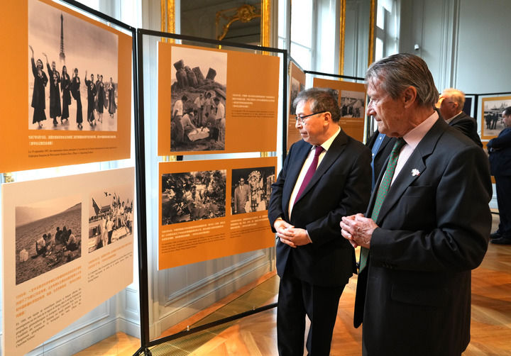 3月12日,嘉宾在法国巴黎中国文化中心的“中法建交主题图片展”展厅参观。(唐霁 摄)