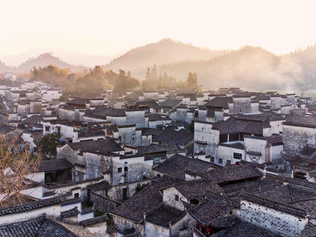这是3月21日清晨拍摄的黄山市黟县西递村(无人机照片)。新华社记者 郭晨 摄