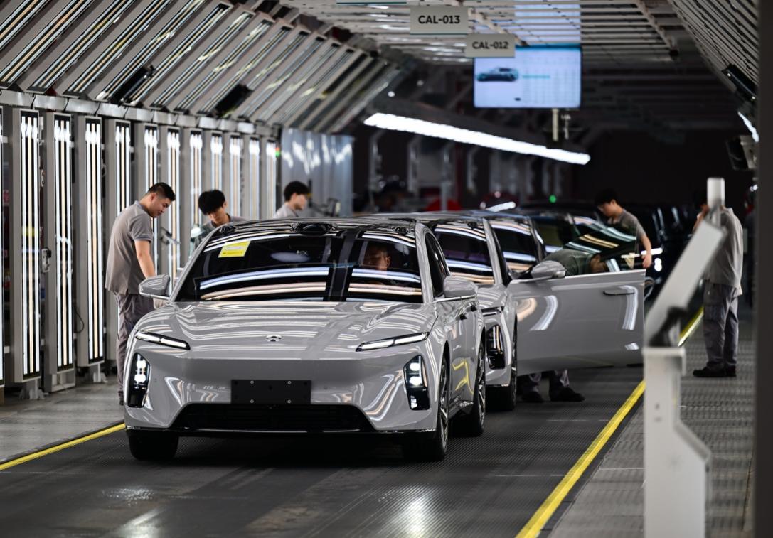 7月1日在合肥市新桥智能电动汽车产业园蔚来第二工厂拍摄的新能源汽车生产线。新华社记者 周牧 摄