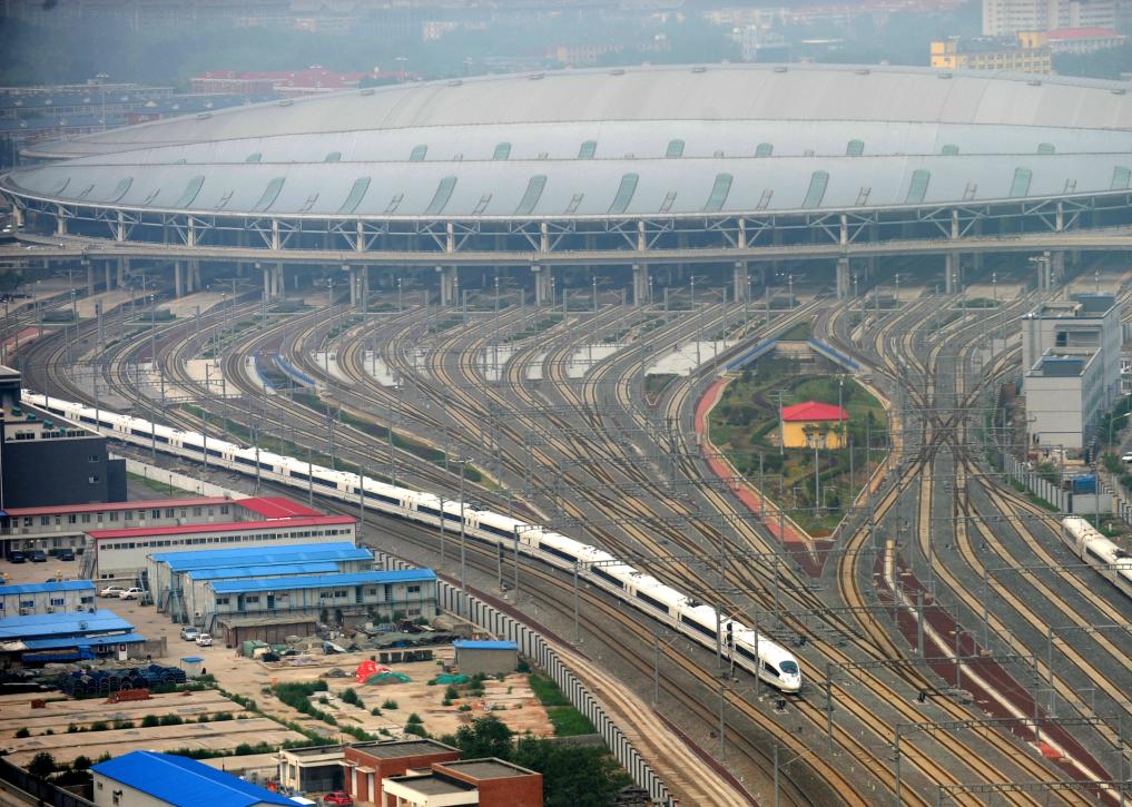 ↑2011年6月30日,首列正式运营的京沪高铁列车从北京南站驶出,开往上海。当日,京沪高铁正式开通运营。新华社记者 刘勇贞 摄