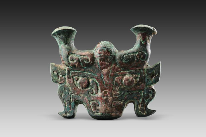 这是陕西清涧寨沟遗址后刘家塔墓地出土的铜车马器(资料照片)。新华社发