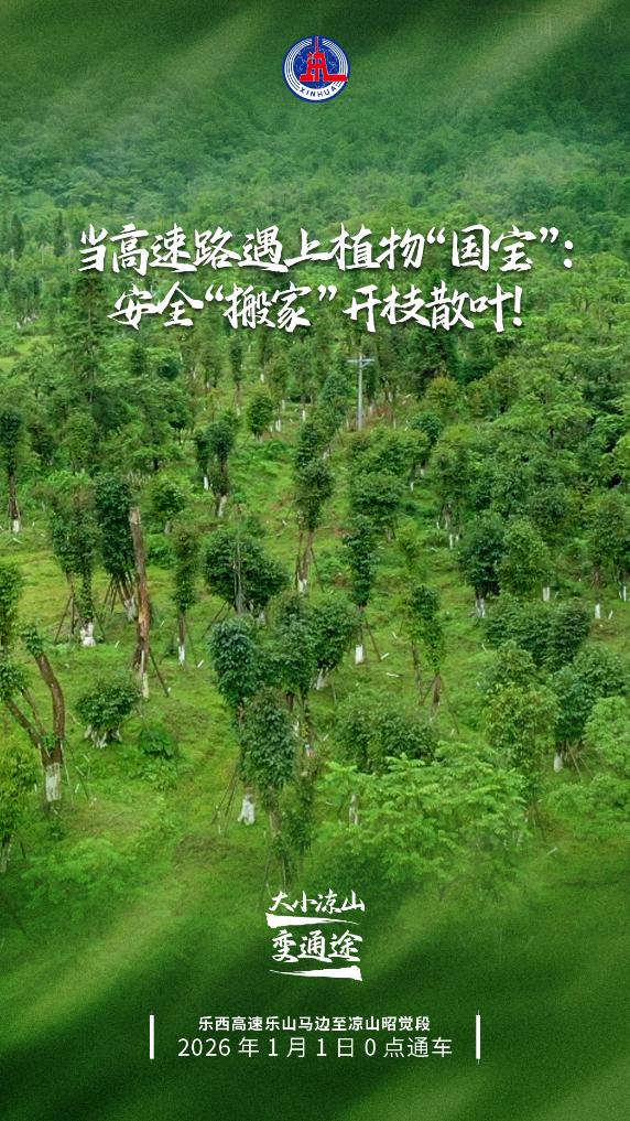 新华社成都12月31日电(记者吴光于、江宏景、胡旭)位于四川西南的乐山至西昌高速公路马边至昭觉段(简称“乐西高速马昭段”)将于2026年1月1日0时通车,这条高速公路将连通大小凉山。记者日前来到大风顶服务区附近的乐西高速珙桐移栽区,在崇山峻岭间矗立的珙桐林正挺立在冬日严寒中。最近,这片移栽后的珙桐林完成了验收,三年成活率超过90%。