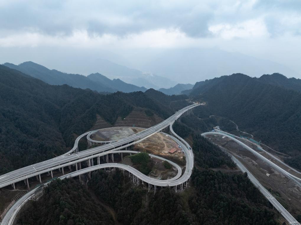 12月26日,俯瞰乐西高速大风顶枢纽(无人机拍摄)。新华社记者 江宏景 摄