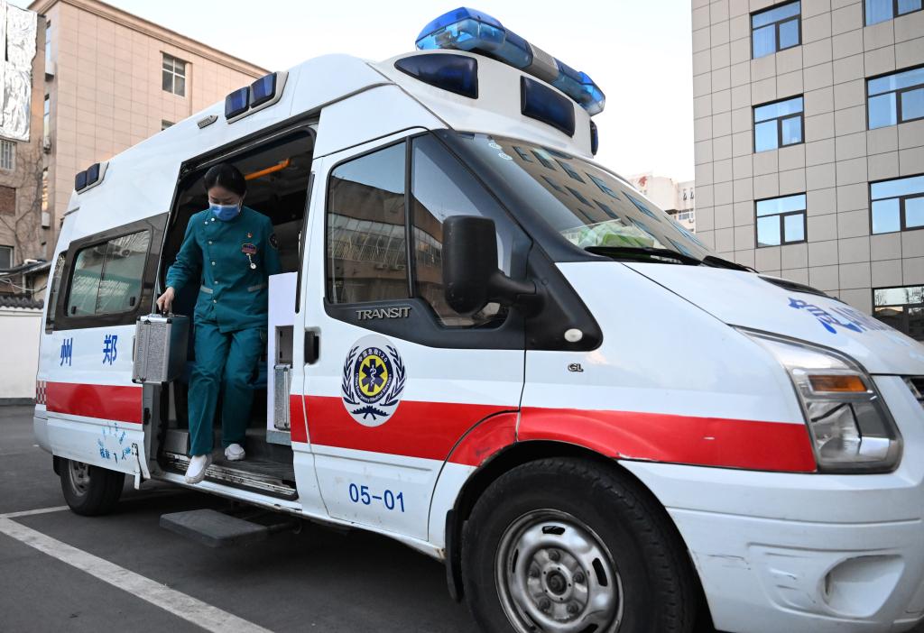 郑州人民医院急诊科护士在更换急救车内的药品。新华社记者 李嘉南 摄