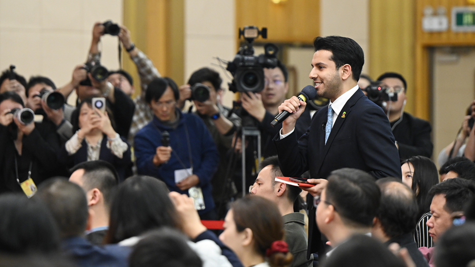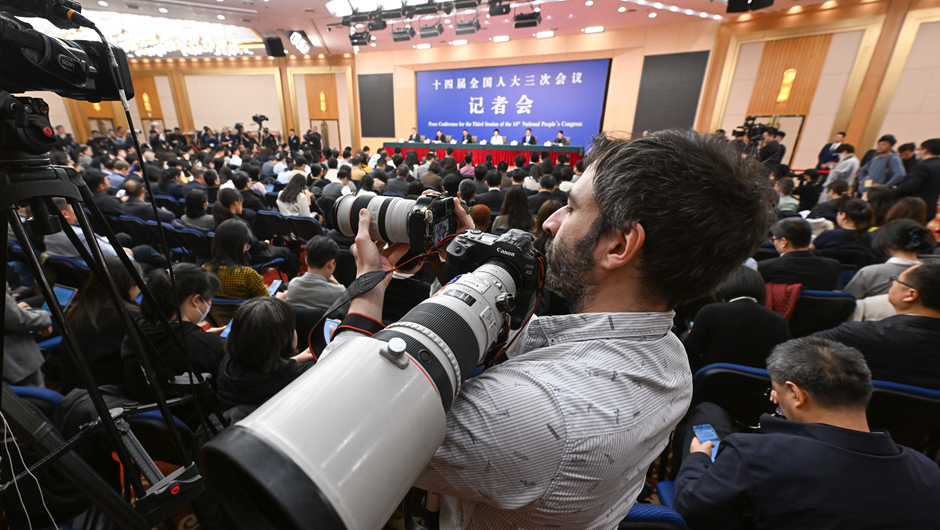 十四届全国人大三次会议新闻中心主任、全国人大常委会办公厅新闻局局长金晴中主持记者会