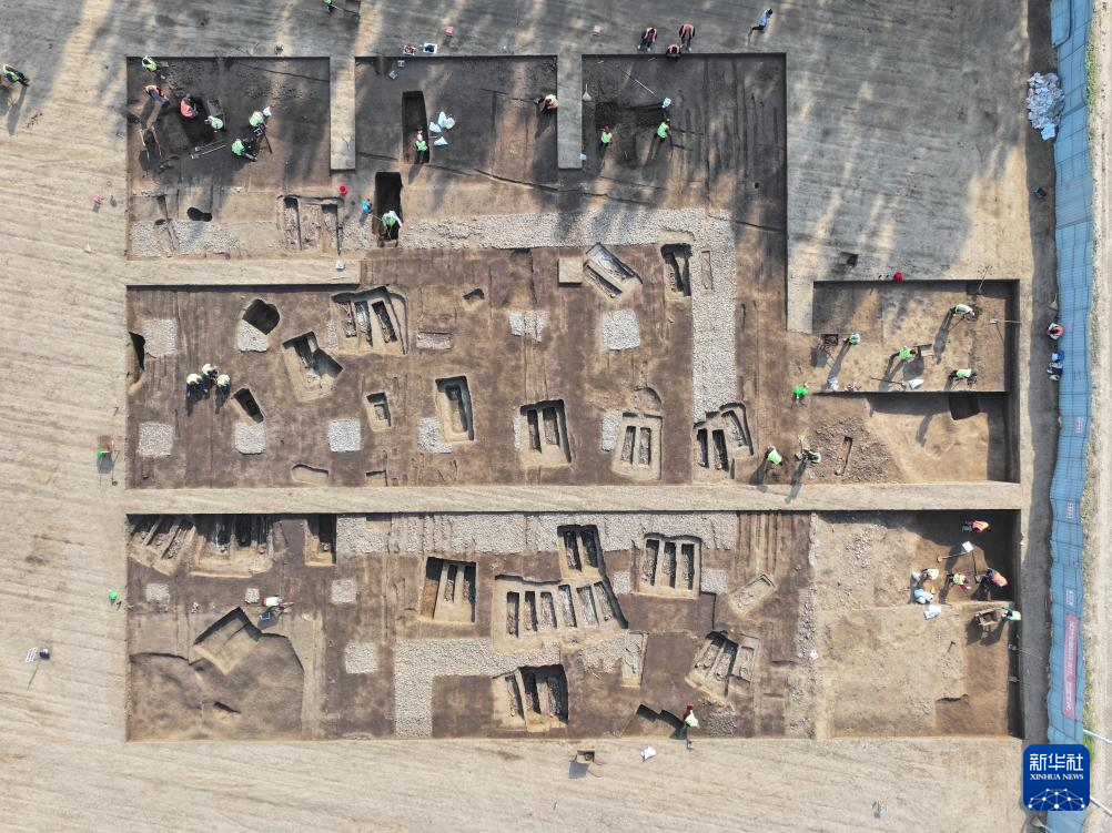 天津十四仓遗址考古发掘现场(无人机照片,2025年11月4日摄)。新华社发(天津市文化遗产保护中心供图)