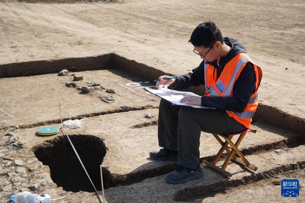 天津市文化遗产保护中心工作人员在十四仓遗址进行考古绘图(2025年9月28日摄)。新华社发(天津市文化遗产保护中心供图)