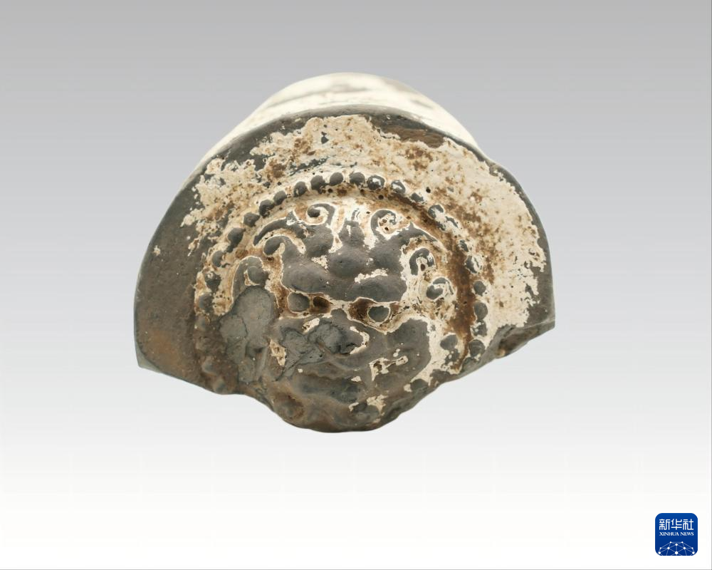 天津十四仓遗址出土的兽面纹瓦当(2025年12月10日摄)。新华社发(天津市文化遗产保护中心供图)