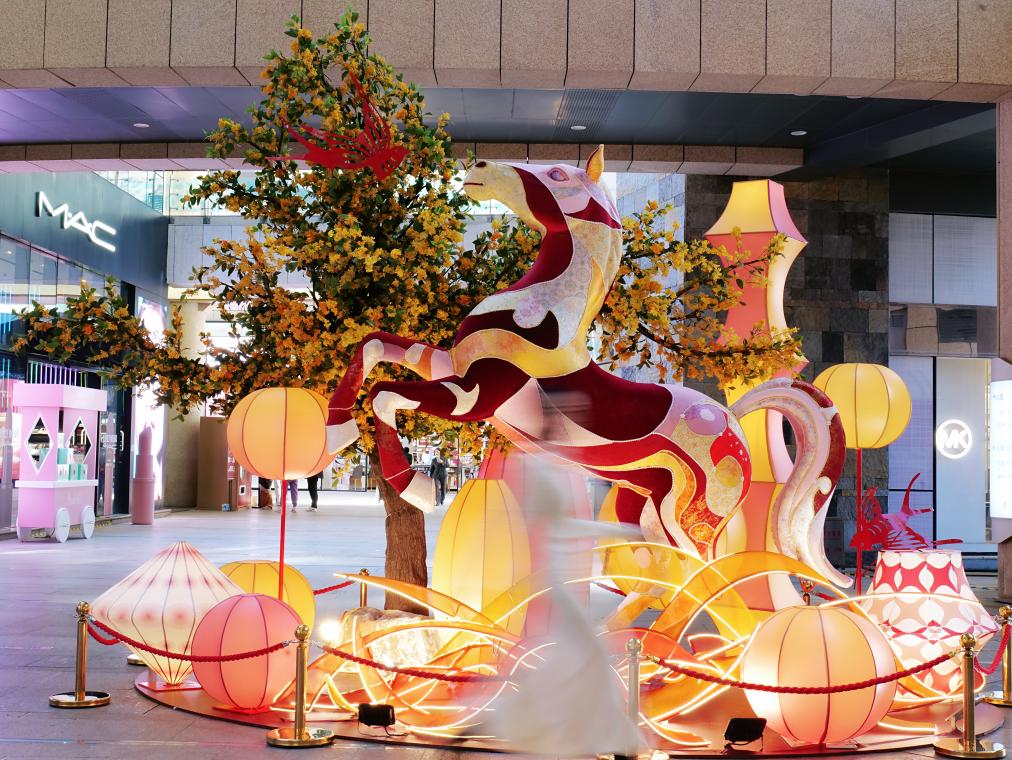 据介绍,这些艺术装置以生肖马为情感载体,将非遗技艺、本土符号和特色产业融入艺术创作,不仅渲染了新春氛围,更成为带动商圈人流、激活文旅消费的重要动力。