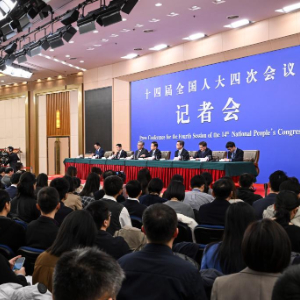3月6日,十四届全国人大四次会议在北京梅地亚中心新闻发布厅举行记者会。国家发展和改革委员会主任郑栅洁、财政部部长蓝佛安、商务部部长王文涛、中国人民银行行长潘功胜、中国证券监督管理委员会主席吴清就发展改革、财政预算、商务、金融证券等相关问题回答中外记者提问。
