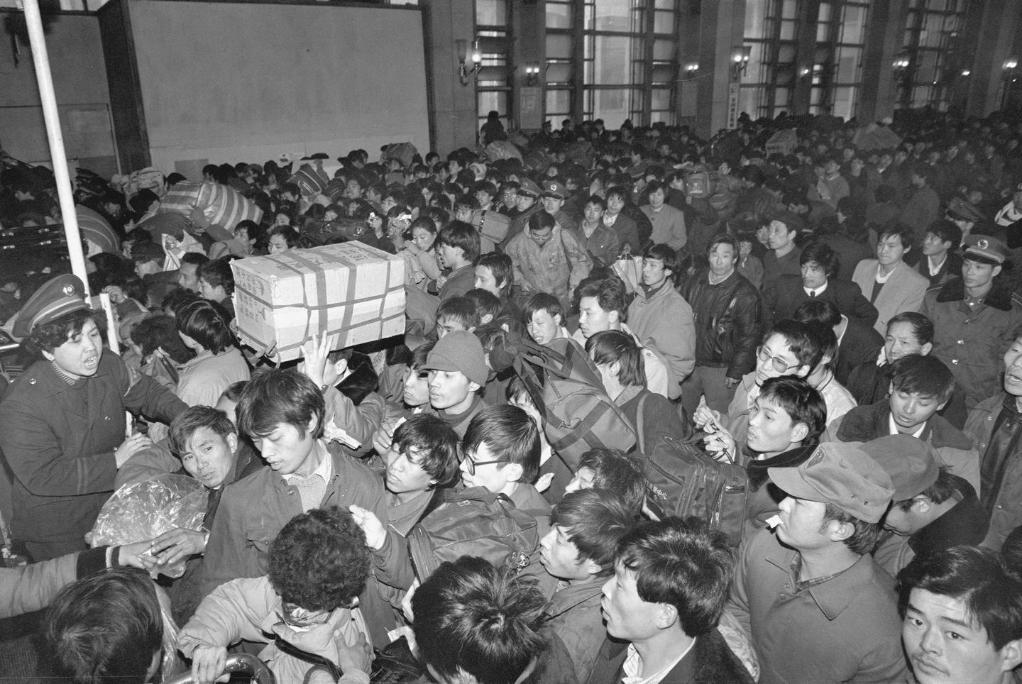 1993年1月12日,北京火车站开始进入春运高峰,旅客在排队进站。新华社记者 唐召明 摄