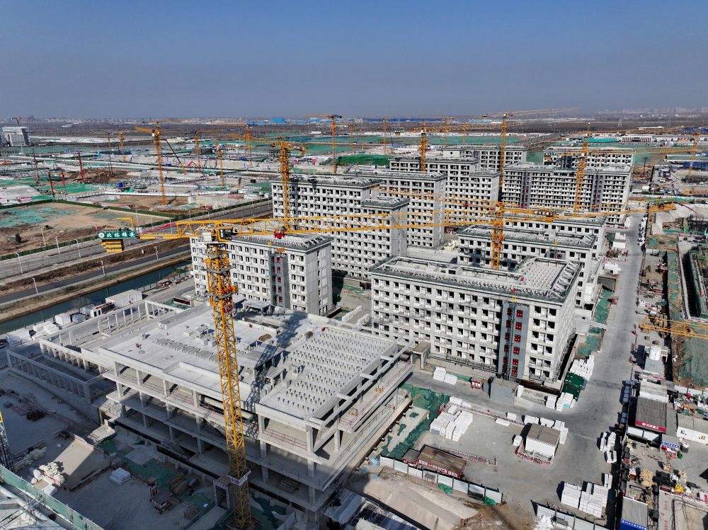 2021年是雄安新区大规模开发建设向纵深发展的关键一年。容东片区是雄安新区开发建设的先行区域,担负着承接北京非首都功能疏解和安置回迁群众的重要任务。这是2021年4月8日拍摄的雄安新区容东片区安置房项目建设现场(无人机照片)。2021年10月,容东第一批安置房开始交付。