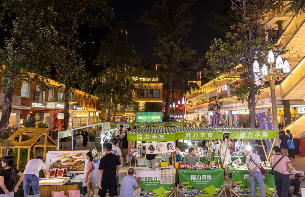 这是郑州市华山路磨街的市集场景。新华社发