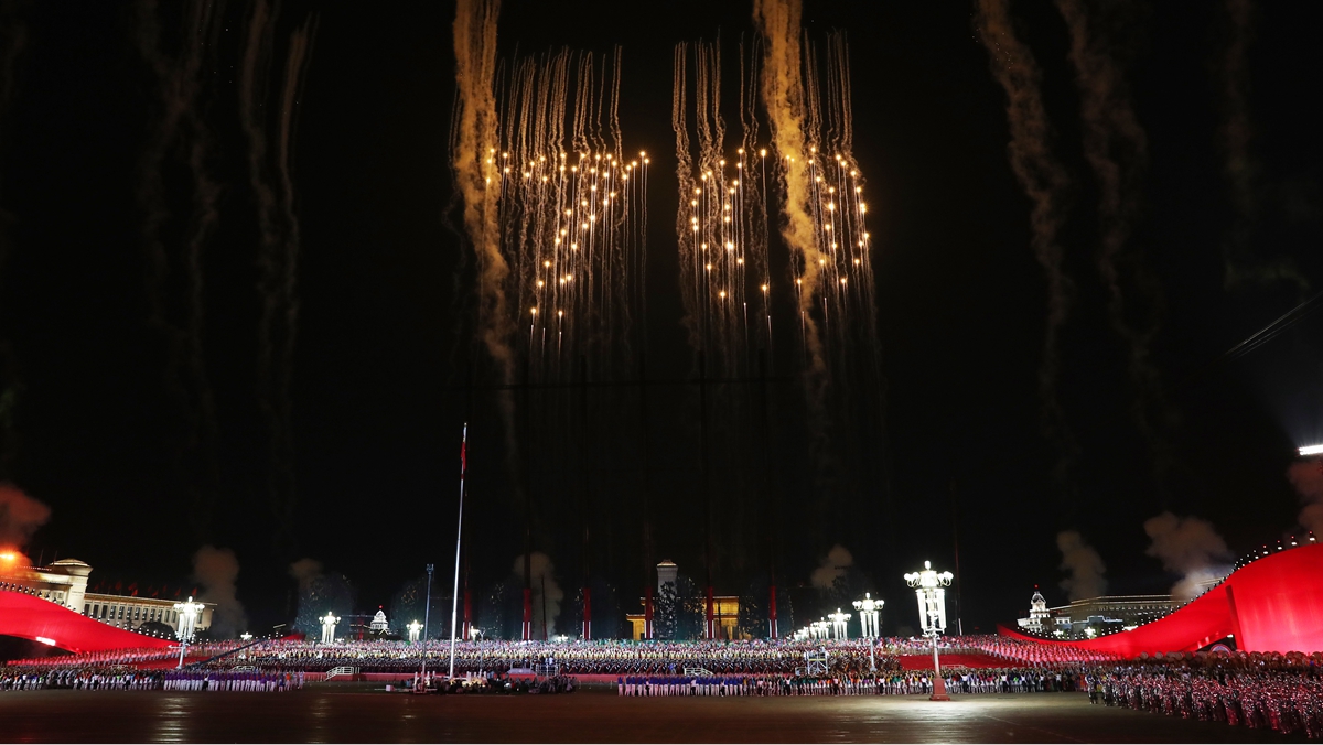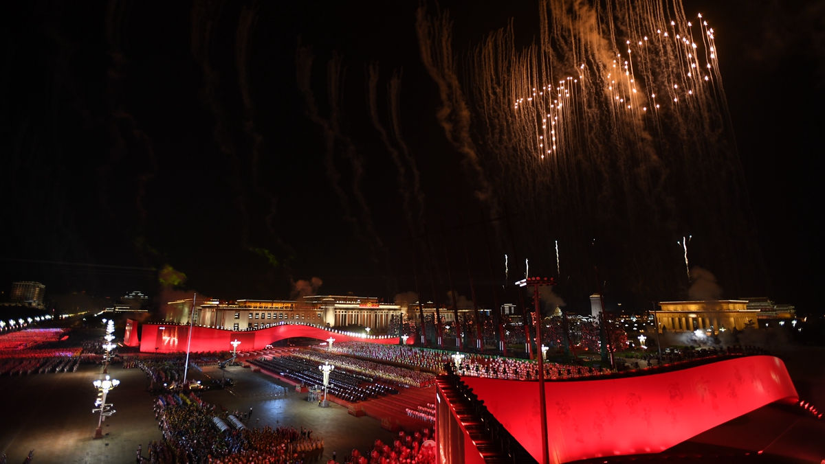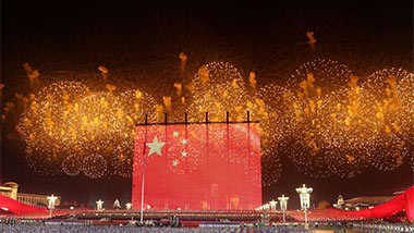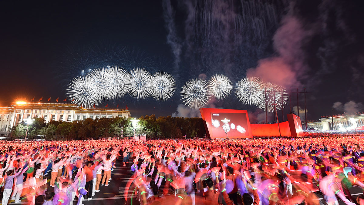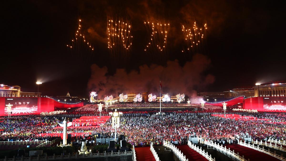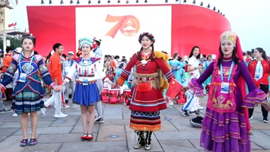 盛装的天安门广场,五星红旗迎风招展。从盛大的国庆阅兵到欢乐的群众游行,轰鸣的礼炮、嘹亮的口号、铿锵的步履、喧天的锣鼓、纷飞的气球、自信的欢歌……生动的画面传向五洲,欢乐的笑脸感染世界。