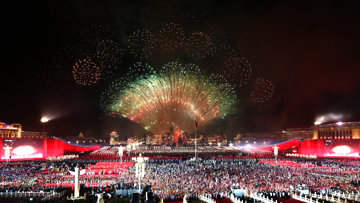 一组组令人惊叹的数据、一声声真挚动人的祝福,展现出一个民族繁荣昌盛、继往开来的光明前景,昭示了实现伟大复兴梦想的美好未来。