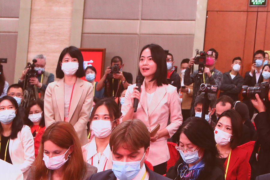 中国共产党第二十次全国代表大会新闻发言人2022年10月15日(星期六)16时30分在人民大会堂举行新闻发布会。图为