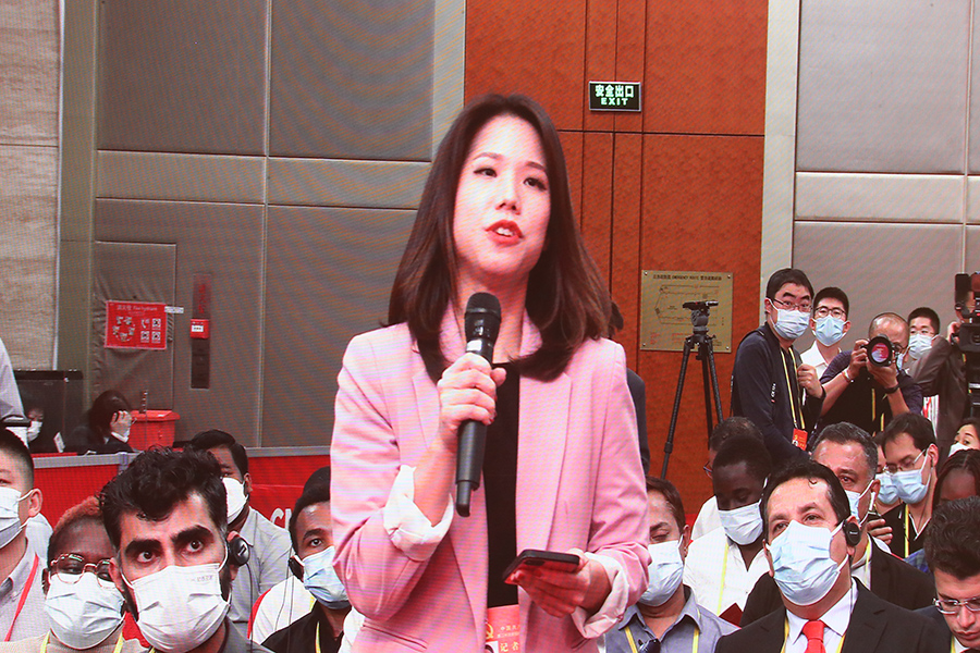 中国共产党第二十次全国代表大会新闻发言人2022年10月15日(星期六)16时30分在人民大会堂举行新闻发布会。图为