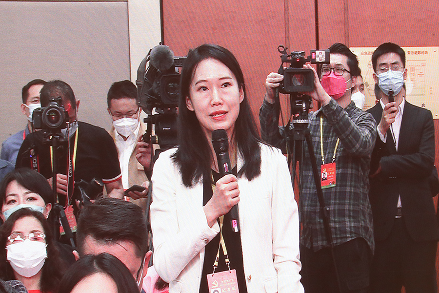 中国共产党第二十次全国代表大会新闻发言人2022年10月15日(星期六)16时30分在人民大会堂举行新闻发布会。图为