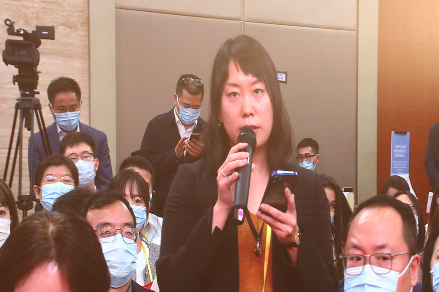 中国共产党第二十次全国代表大会新闻发言人2022年10月15日(星期六)16时30分在人民大会堂举行新闻发布会。图为