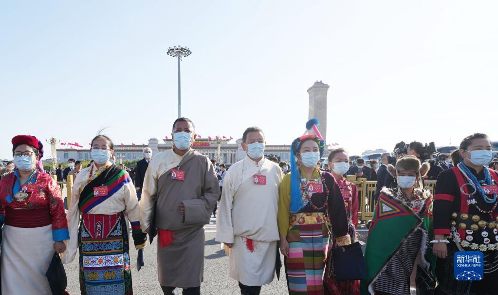 10月16日,中国共产党第二十次全国代表大会即将在北京人民大会堂开幕。这是代表抵达会场。
