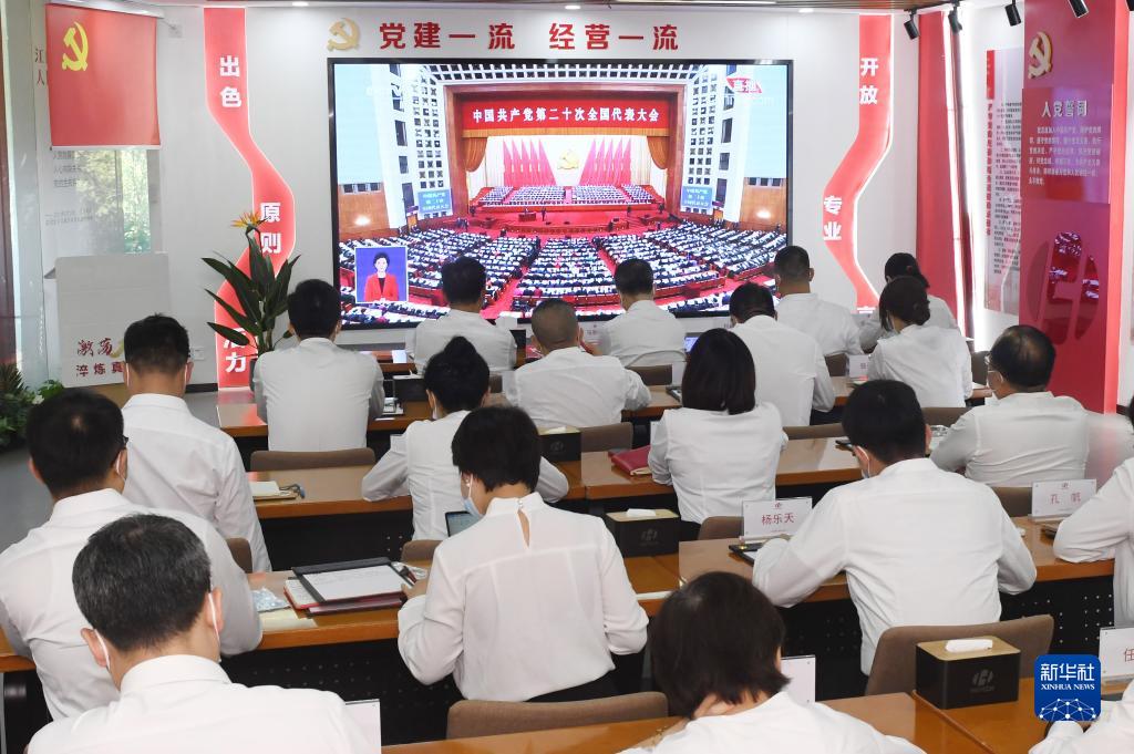 10月16日,在湖北省武汉市,华工科技产业股份有限公司党委中心组集中观看中国共产党第二十次全国代表大会开幕会。