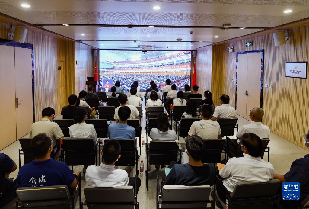10月16日,在位于海南省三亚市崖州湾科技城的崖州湾种子实验室,科研工作者收看中国共产党第二十次全国代表大会开幕会。