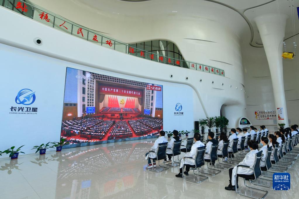 10月16日,在吉林省长春市,长光卫星技术股份有限公司科研人员收看中国共产党第二十次全国代表大会开幕会。