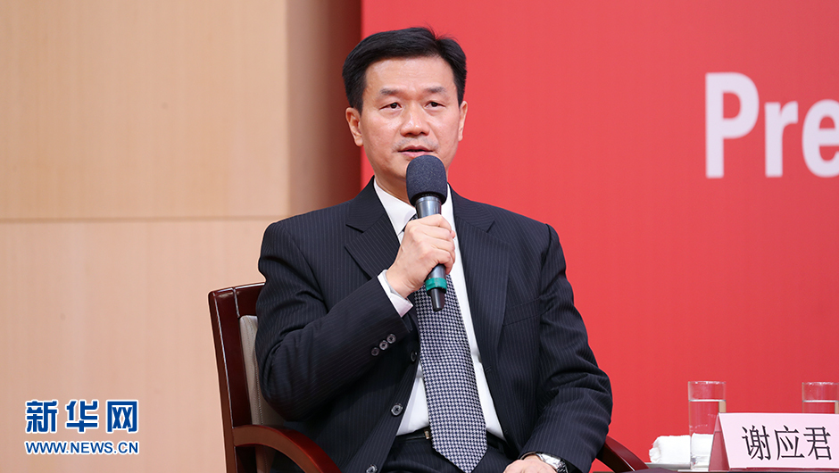 10月18日(星期二)19:30,二十大新闻中心在梅地亚新闻中心二层新闻发布厅举办第二场集体采访。图为二十大新闻中心负责人谢应君。(徐想 摄)