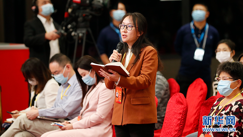10月18日(星期二)19:30,二十大新闻中心在梅地亚新闻中心二层新闻发布厅举办第二场集体采访。图为中国妇女报记者在分会场提问。(新华网 陈杰 摄)