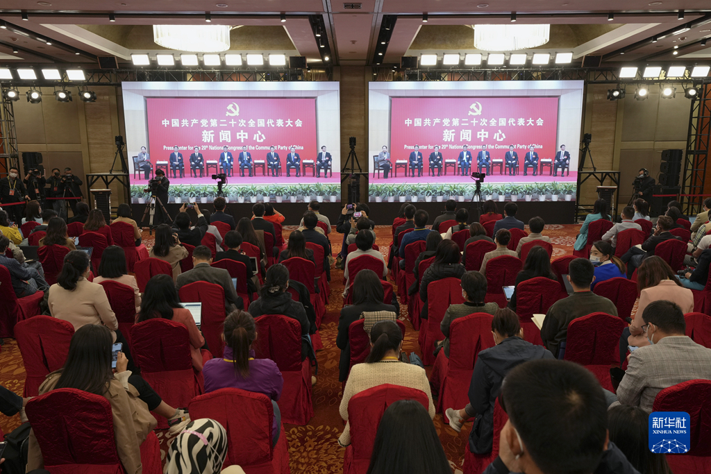 10月19日,中国共产党第二十次全国代表大会新闻中心举行集体采访。山东、河南、湖北、湖南、广东、广西、海南代表团新闻发言人出席,介绍代表团学习讨论二十大报告情况,并回答记者提问。