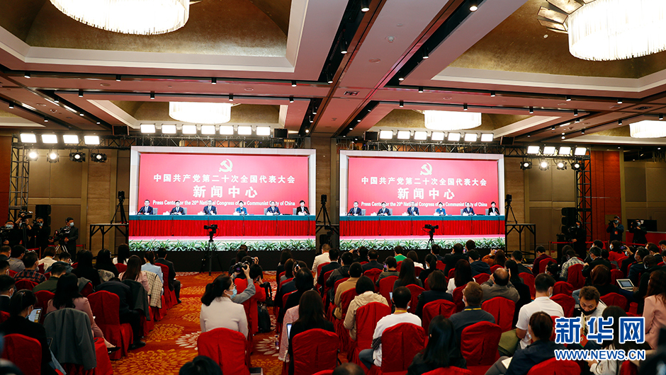 10月19日(星期三)10:00,二十大新闻中心在梅地亚新闻中心二层新闻发布厅举办第三场记者招待会。图为记者招待会分会场现场。(新华网 陈杰 摄)