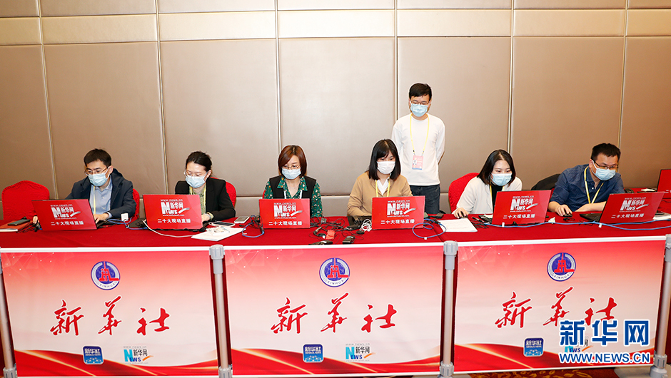 图为记者在集体采访分会场工作。(新华网 陈杰 摄)