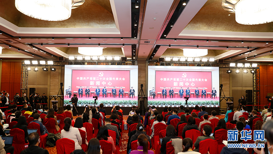 10月19日(星期三)15:00,二十大新闻中心在梅地亚新闻中心二层新闻发布厅举办第三场集体采访。图为集体采访分会场。(新华网 陈杰 摄)